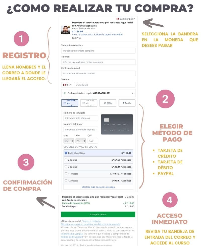 El cupon se encuentra activo hasta que el contador llegue a 0, haz click en «inscribete al programa aqui» y te dirigirá al chekout, selecciona tu pais y listo.